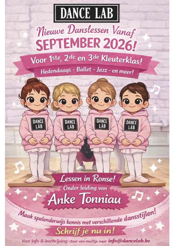 Heeft jouw kleuter uit het 1ste, 2de of 3de kleuterklas zin om te dansen bij DanceLab?